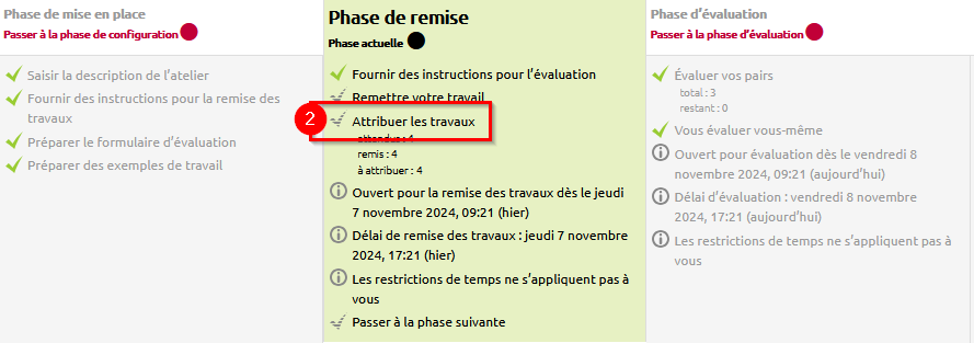Pour plus d'informations sur l'attribution des travaux, consulter la partie Attribuer les travaux de la page Phase de remise.