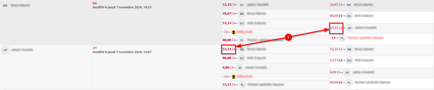 1. Cliquez sur une note de la colonne « Notes reçues » ou « Notes données » pour accéder à l’évaluation correspondante.