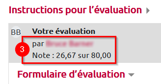 3. Tout en haut du « Formulaire d’évaluation », vous voyez qui a évalué ce travail ainsi que la note donnée.