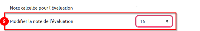 9. « Modifier la note de l’évaluation » en sélectionnant la note souhaitée dans le menu déroulant.