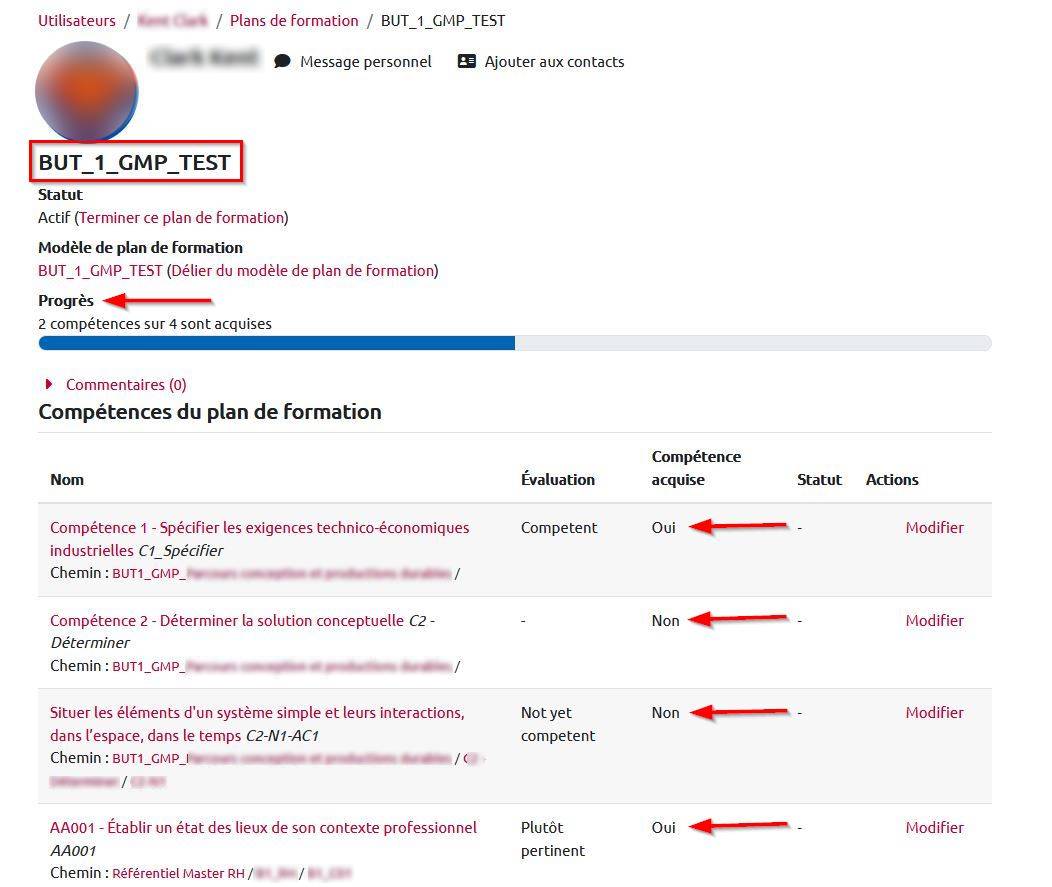 - L'étudiant peut visualiser sa progression dans son plan de formation personnel.