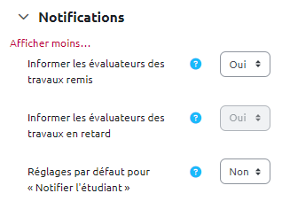 Ces notifications permettent d'envoyer un mail à l'enseignant dès qu'un travail est remis. Si une date limite de remise est précisée, vous pouvez recevoir des notifications sur les travaux en retard.