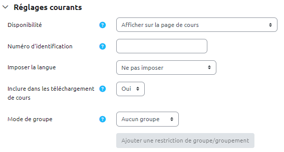 - Groupe: n'autoriser que les étudiants membres d'un groupe spécifié ou de tous les groupes ;