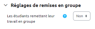 Si votre espace de cours comporte des groupes d'utilisateurs, il est possible de proposer que les étudiants remettent leurs travaux en groupe. Si cette option est activée, la correction du devoir sera répercutée sur tous les membres du groupe.