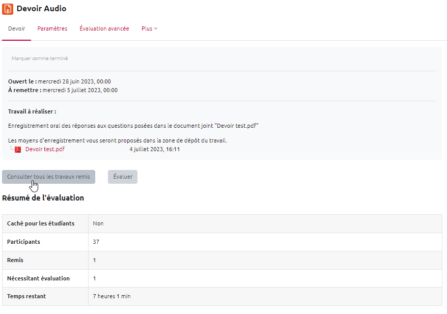 Créer et paramétrer un devoir audio