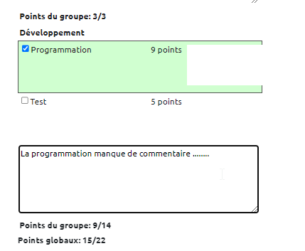 - comme on peut voir sur l'image ci-dessus, les points par groupe et globaux se mettent à jour au fur et à mesure de la correction