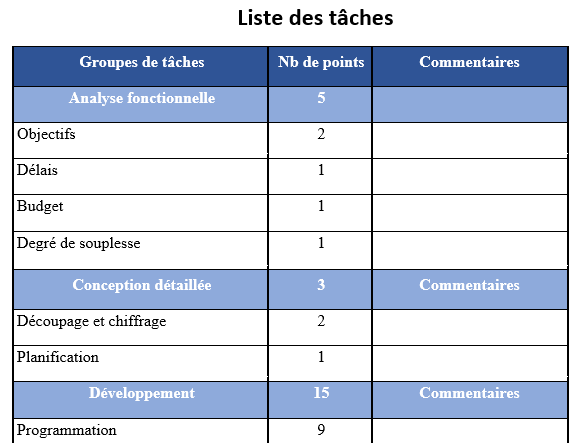 - modifier les points attribués à une tâche en cliquant sur ces points