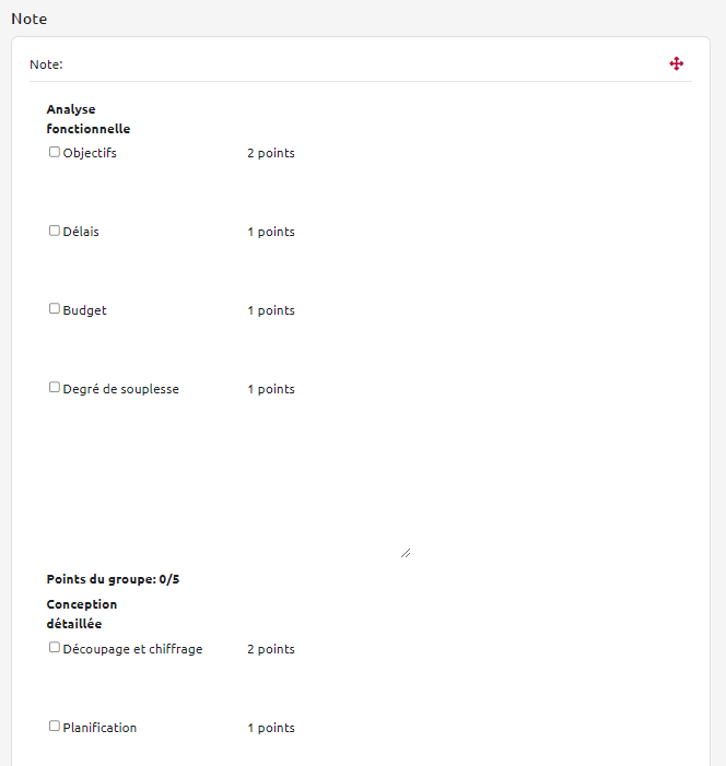 - Vous pouvez cocher la tâche si elle est validée (ce qui déclenche l’obtention des points correspondants) et indiquer les commentaires souhaités pour la tâche :
