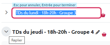 Avec ce format, l'espace cours est composé de sections qui vous permettent d'organiser, de structurer votre cours en séquences, thèmes, parties ou chapitres.