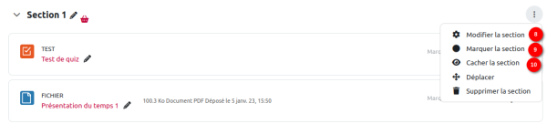 7. Déplacement de la ressource ou activité dans la section/cours.