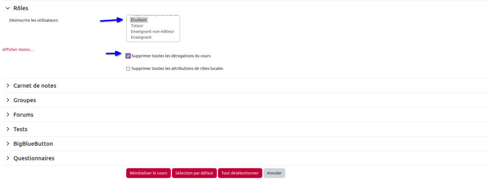 Réinitialiser votre cours (suppression des traces étudiants)