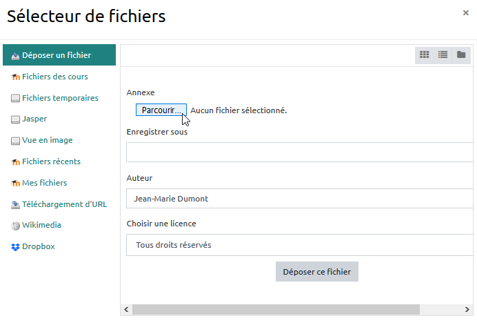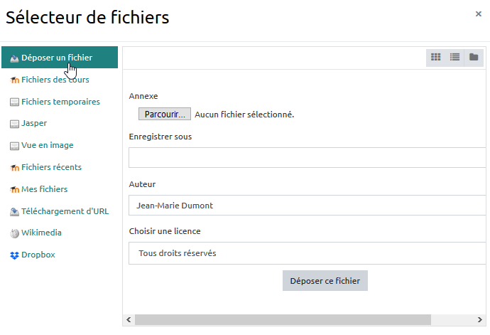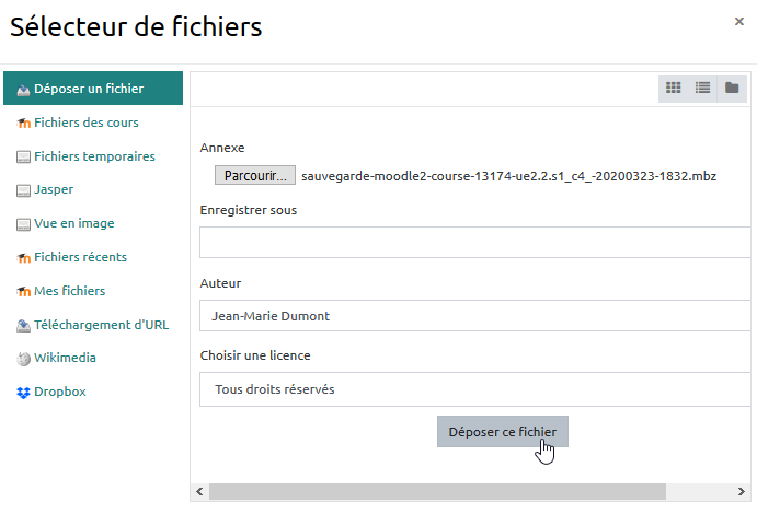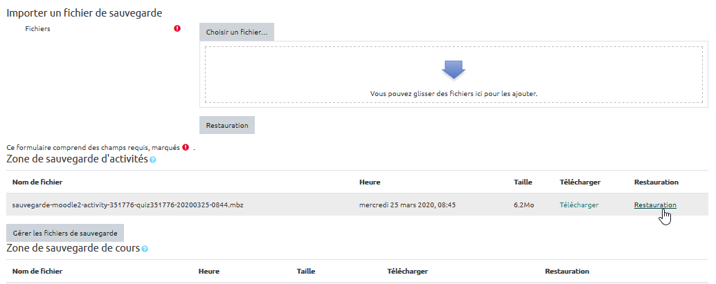 Cas 1 : La sauvegarde est stockée sur Moodle dans l'activité
