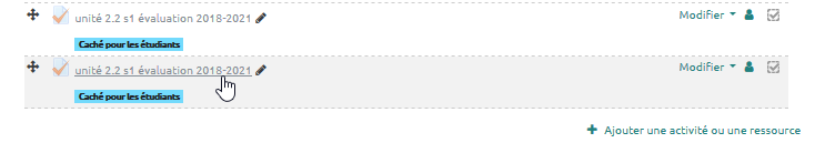 - Dans le cours de destination, vérifier que l'activité a été restaurée :