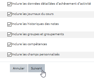 - Vérifier que toutes les cases sont cochées puis cliquer sur “Suivant” :