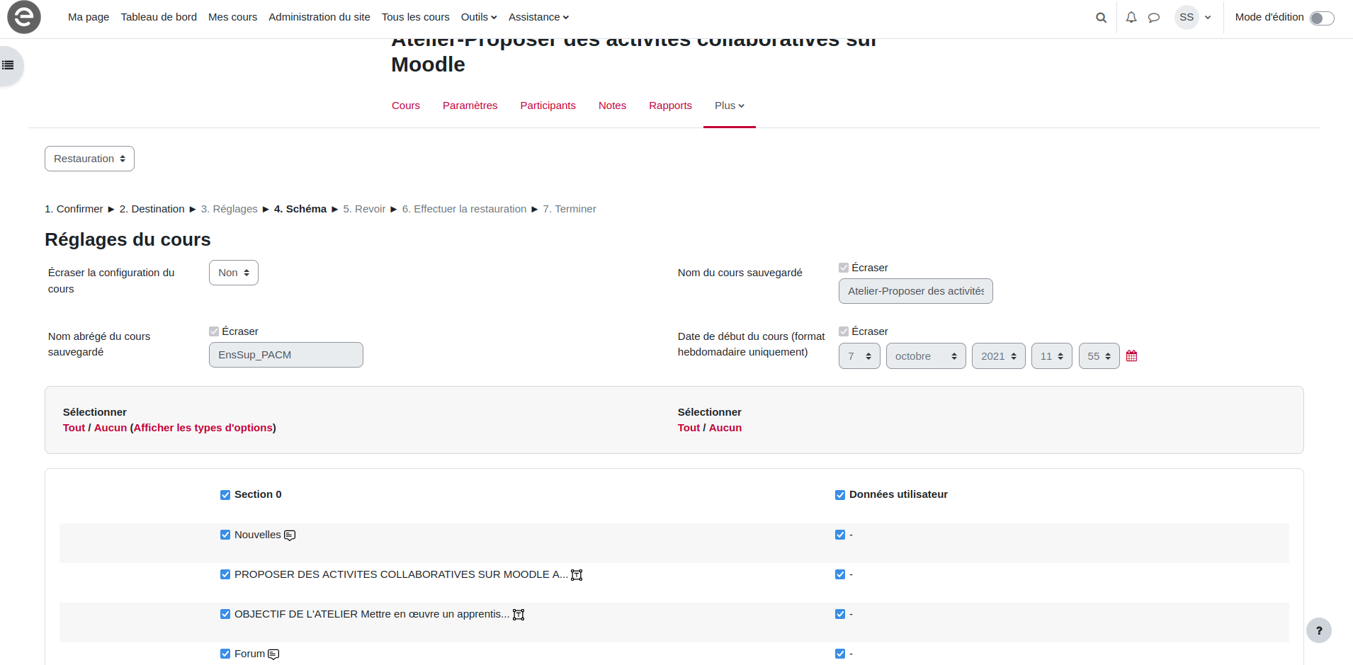 Sauvegarde et restauration d'un espace de cours