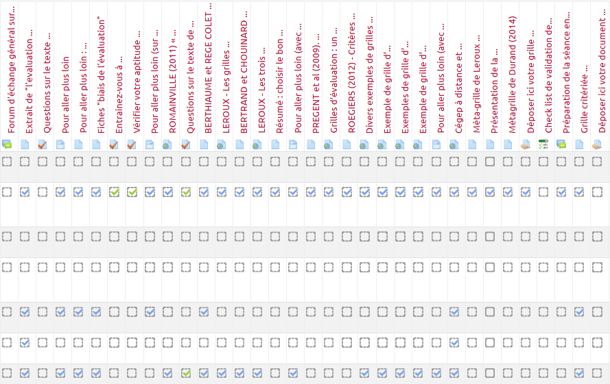 - Vous accédez alors à un tableau listant vos étudiants et les activités :