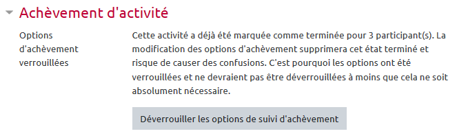 Vous pouvez aussi vous reporter à la documentation officielle de Moodle : Suivi d'achèvement