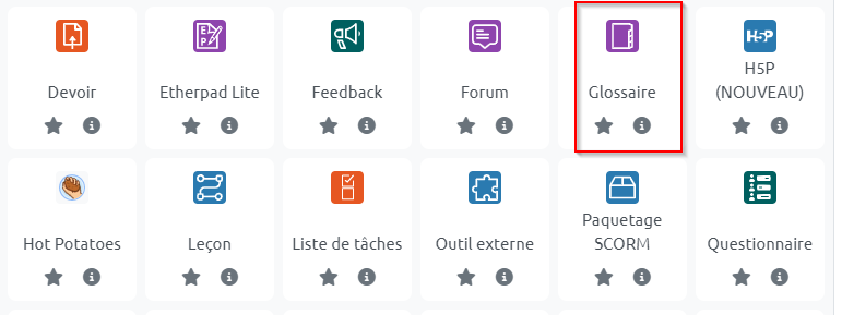 En mode “Édition”, il faut ajouter une nouvelle activité “Glossaire” :