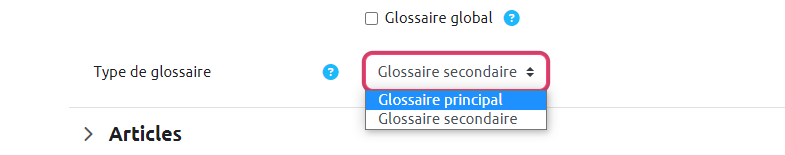 Un glossaire principal peut agréger plusieurs glossaires secondaires. On peut imaginer un glossaire secondaire par chapitre du cours, rassemblés dans un glossaire principal.