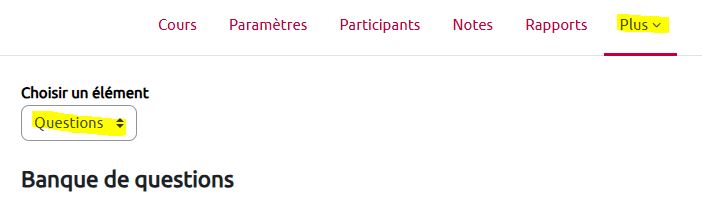 Dans l'espace de cours où se trouve le test, cliquez sur l'onglet Plus, puis sélectionnez Banque de questions dans le menu déroulant.