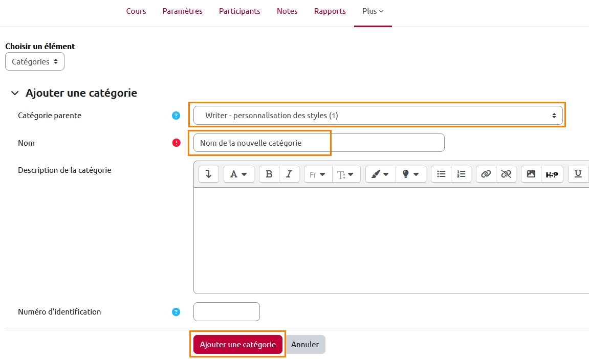 Renseignez ensuite le Nom de cette nouvelle catégorie.