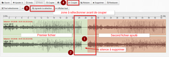 - (2) Cliquer et sélectionner la zone à supprimer avec une marge de chaque côté.