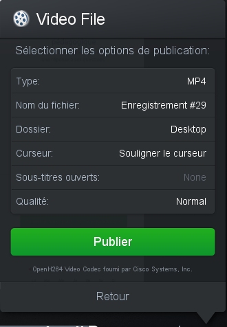 La fenêtre Video File vous permet de régler les options de publication de la vidéo.