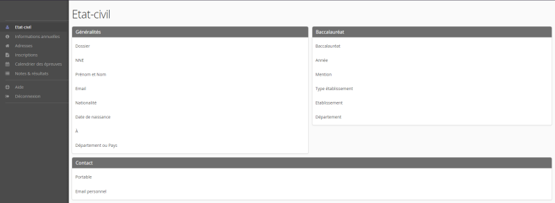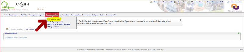 Étape 3 - Vous accédez à votre Dossier Web. Il contient toutes les informations administratives renseignées lors de votre inscription.