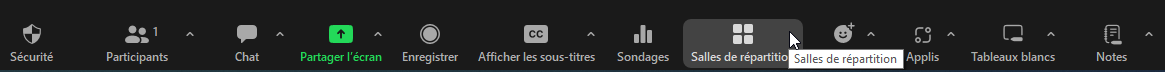 Pour créer des salles de répartition dans Zoom, vous devez cliquer sur “Salles de répartition”.
